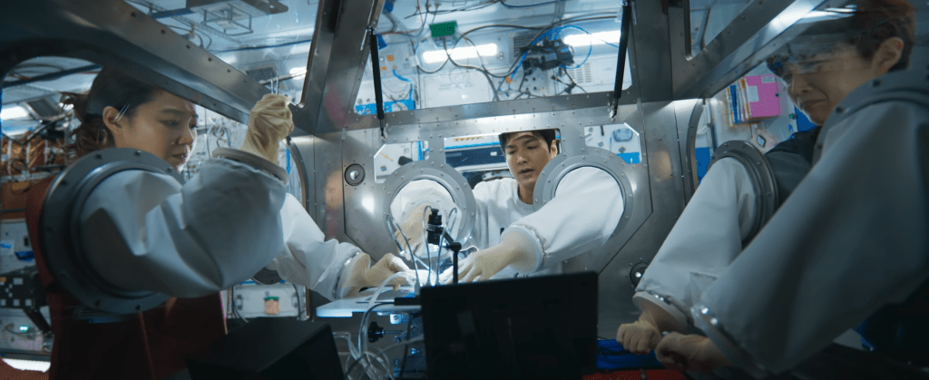 I also have to commend the director for the way that the drama is filmed and shot and edited. It was so interesting to watch the group in the space station navigate and move about in the space craft. It can be tricky filming locations that are essentially a closed space and still try to be engaging, intriguing, creative, and cool. The director of this drama was able to successfully direct the drama in a way where it was effective in telling the story but also was pleasing to the eyes. I also think music played a big part in defining each moment, scene, and story. Music and songs in dramas in general play a big part but the background music in this drama just elevated each scene even more and showed you what type of scene it wanted to be. I wasn’t left guessing if a scene wanted me to treat it seriously or comically and a big reason for that was because the background music helped me out in determining that.