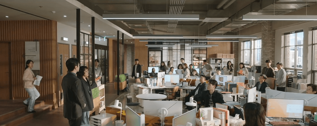Eun-ho is properly introduced to the rest of the staff by Mi-ae and they sure are a unique bunch. Eun-ho learns really quickly that they’re quite different from his former co-workers. There’s consultant Manager Kim Young-soo, Deputy Na Gyu-rim, Oh Kyung-hwa, and Lee Kwang-hee (who warns Eun-ho to run away during his introduction LOL), and Jung-hoon who acts a little wild and wacky when he arrives into the office. It’s an eventful first day of work for Eun-ho so far, haha.