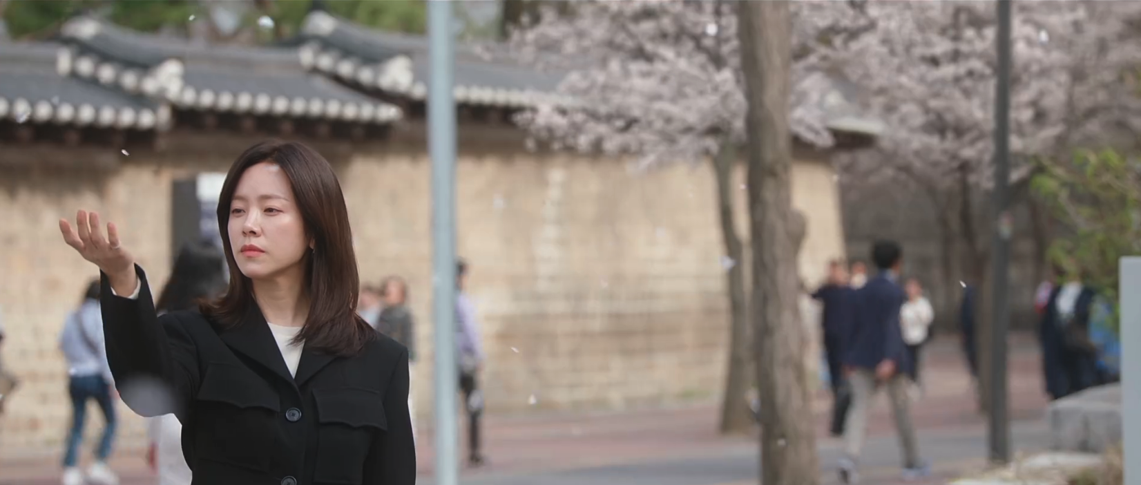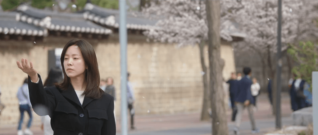 During the walk to work, Ji-yoon is distracted by some cherry blossoms and is reminded of her late father. She recalls the time when the both of them spent some time at an amusement park surrounded by falling cherry blossoms petals. It’s a memory she holds dearly in her heart and her heart aches at the thought of her father failing to keep his promise of protecting her. Eun-ho – who was also walking to work – catches sight of Ji-yoon from across the street and he watches her carefully. He continues to worry for her even while at work. Ji-yoon doesn’t look or feel good at work. She’s usually sick around this time of the year due to the passing of her father so Eun-ho takes her out for lunch. He wants to make sure she eats but Ji-yoon isn’t in the mood. She grows even more upset when she realizes how similar Eun-ho is to her father. Eun-ho opens up and shares that he decided to go on parental leave to be there for his daughter. He’s all she has left. This was something that Ji-yoon’s dad also promised Ji-yoon when she was younger which he ultimately failed to do. Ji-yoon takes it out on Eun-ho later on in her office. His acts of service are too much for her sometimes and she only needs him to do whatever she says for him to do. Everything else is overdoing it and she doesn’t like it. So Eun-ho understands and walks away.