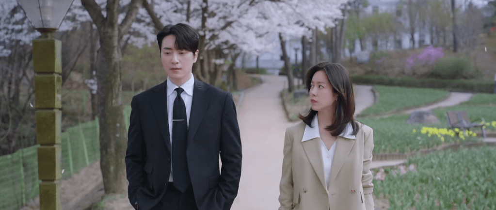 Ji-yoon and Eun-ho’s relationship just feels so natural and seamless and it doesn’t feel forced. I loved the moment when they went on a walk where Eun-ho respected Ji-yoon’s boundaries and then they had some fun playing a random game of basketball with some kids. Eun-ho is there as Ji-yoon’s secretary to provide structure and organization: he prepares her weekly schedule and reports and updates her with any information that she needs. But as we saw in this episode, it’s also the unexpected and spontaneous moments that can provide a spark in one’s life and relationship. The walk and the basketball game served as a reminder that it’s healthy to take a much-needed break from work. These moments also allowed Eun-ho and Ji-yoon to see a new side of each other outside of work.