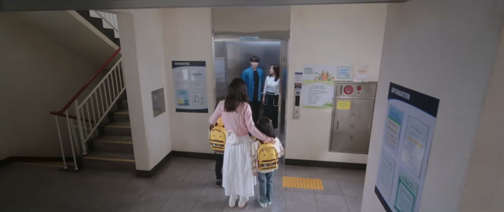 The next morning, Ji-yoon is horrified to find herself still at Eun-ho’s place. She panics when she realizes where she is and accidentally steps on Eun-ho’s hand as she stands up. He was asleep while sitting on the ground next to her and he also wakes up. Eun-ho is horrified when he realizes that he’s late to pick up Byeol and he rushes out the door. Ji-yoon follows after him but their departure is delayed when he has to return to the apartment to grab her cellphone and purse. When the two finally get into the elevator to leave, they realize that it’s too late. The elevator doors open to the appearance of Byeol, Soo-hyun, and Seo-joon standing in front of them. While Eun-ho is shocked to find his daughter in front of him, Ji-yoon is confused. Byeol is happy to be reunited with her father but she also notices Ji-yoon standing next to him. Just what exactly is going on?