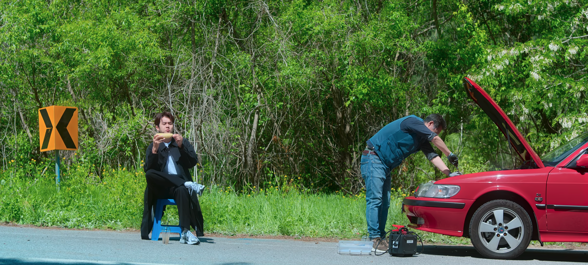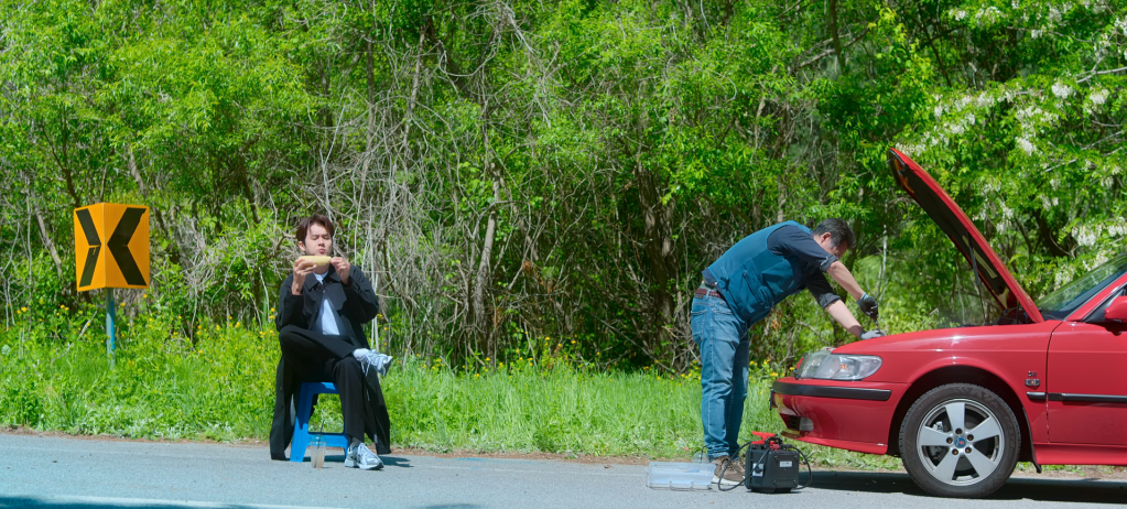 Gyeom heads out on a trip to visit his parent’s memorial site on the anniversary of their passing. Joon is unable to join because he has a therapy session so Gyeom heads out alone. On the drive there, his car ends up breaking down. Thankfully, a street vendor selling some corn fixes Gyeom’s car. But then Gyeom ends up having to walk a little bit later because the main road is blocked and closed off. He eventually makes it to visit his parents. He reassures them that he and Joon will be fine and that they’re doing well. For Gyeom himself, he doesn’t remember much about his parents so even he’s unsure if he’ll keep visiting. Throughout the challenging moments and struggles in his life, Gyeom always believed that life had a fixed amount of happiness. Whenever there was a set amount of misfortune and string of hardships, good things were bound to happen after. It was this belief that got Gyeom through the hardest moments in his life, especially when it came to his brother’s accident. On the drive back home, it suddenly starts to rain and Gyeom is forced to pull over since the windshield wipers on his car are broken. He’s already gone through enough that morning, something good has to happen to him, right?