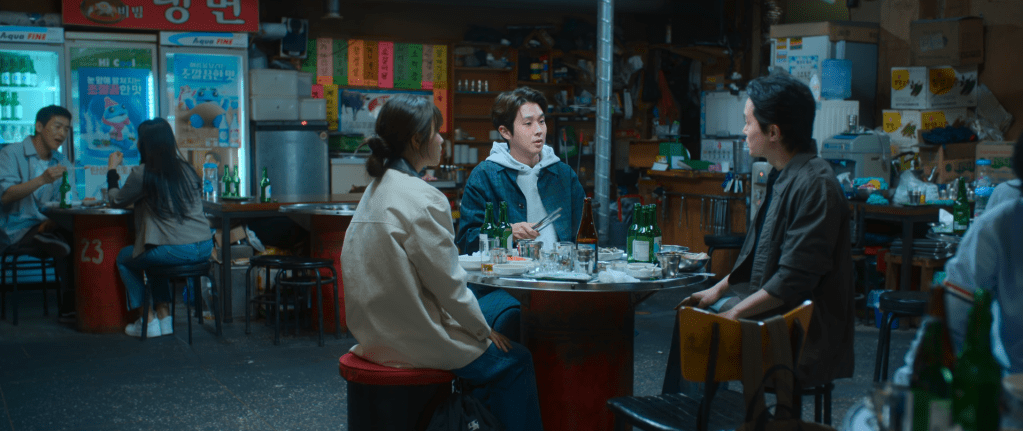 Si-joon feels dejected and down after his tough conversation with his brother. While at his part-time job at Sang-sik’s pub, he starts to question his life choices. He’s been working at Vide Bar for six years already and he feels pathetic. Sang-sik attempts to cheer Si-joon up and suggests that they can drink their hearts out that night. But Si-joon ends up not drinking due to Joo-Ah who unexpectedly shows up to the pub to have a chat with him. Si-joon assumes she’s there because she wants to talk about their relationship. Si-joon’s not interested in being friends with Joo-Ah nor does he want to get back into a relationship with her. He feels nothing for her at all. But that’s not the reason as to why Joo-Ah showed up. She needs his music for the new movie that she’s working on and wants to collaborate with him. She supported him throughout their 7-year relationship when he was focused on making music and now it’s time that he supports her with her dreams. The movie means a lot to her because it was inspired by their relationship (okay wait hold up – this scene between these two was actually so good?? I didn’t really care for it that much at first but now it got me a little more interested!).