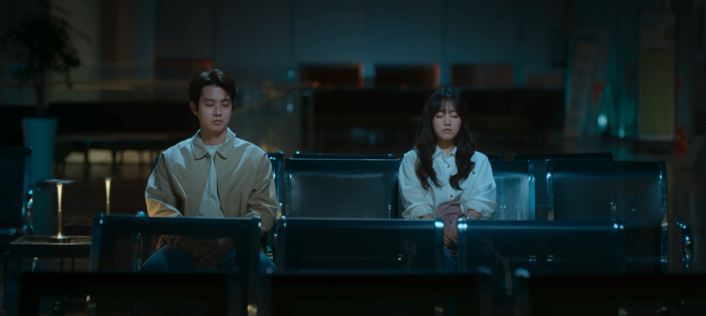 Moo-bi wakes up to find herself alone in the hospital lobby since Gyeom is gone. She takes this as a sign to head back home so she prepares to leave. But Gyeom actually never went back home and he instead disappeared to grab a blanket for Moo-bi. Moo-bi still doesn’t plan on staying at the hospital and she encourages him to also go home. Since they’re neighbors, they might as well head back home together. But before they can get out of the hospital, Gyeom stops Moo-bi to make a confession: he wants to like her again.