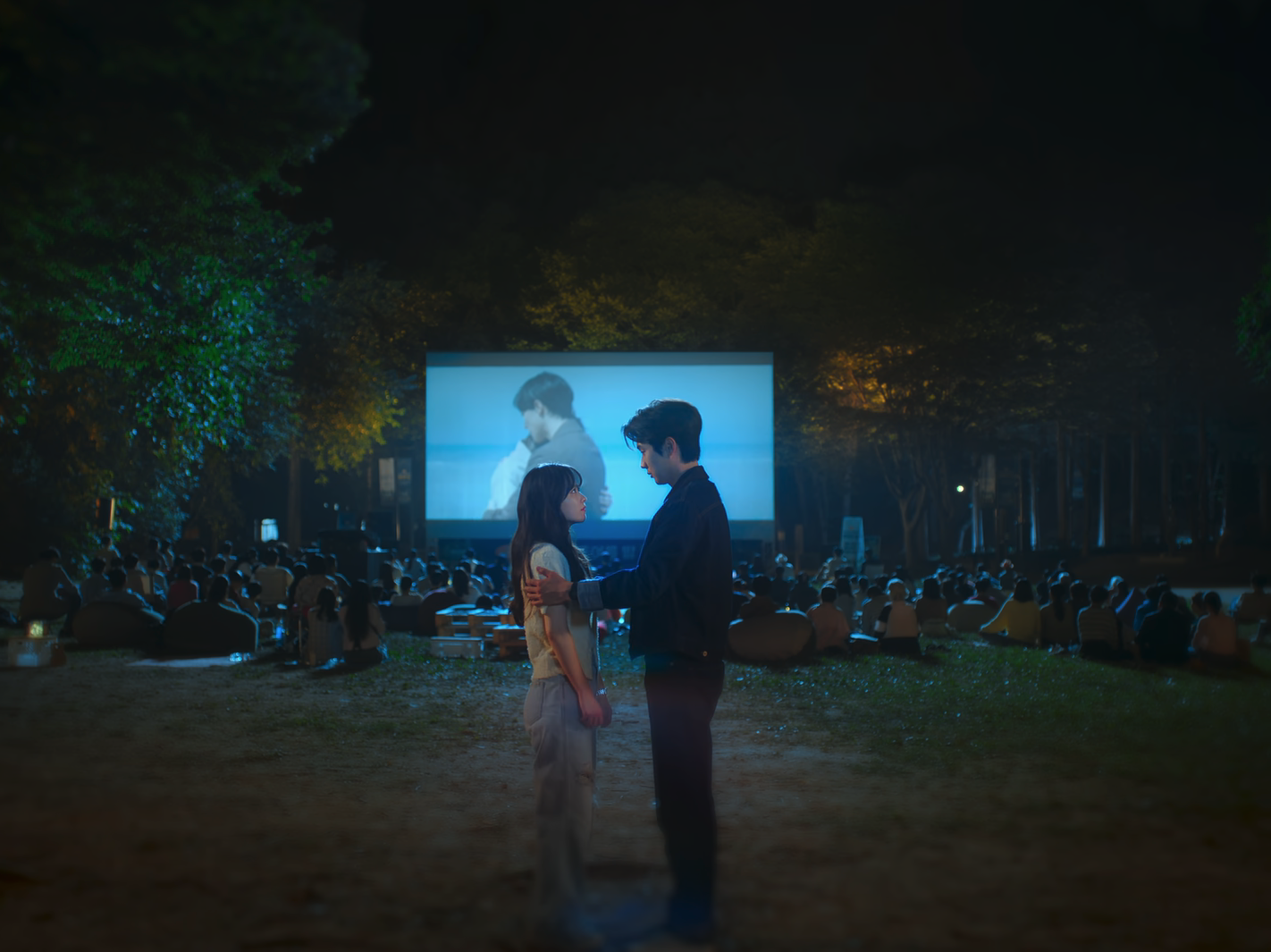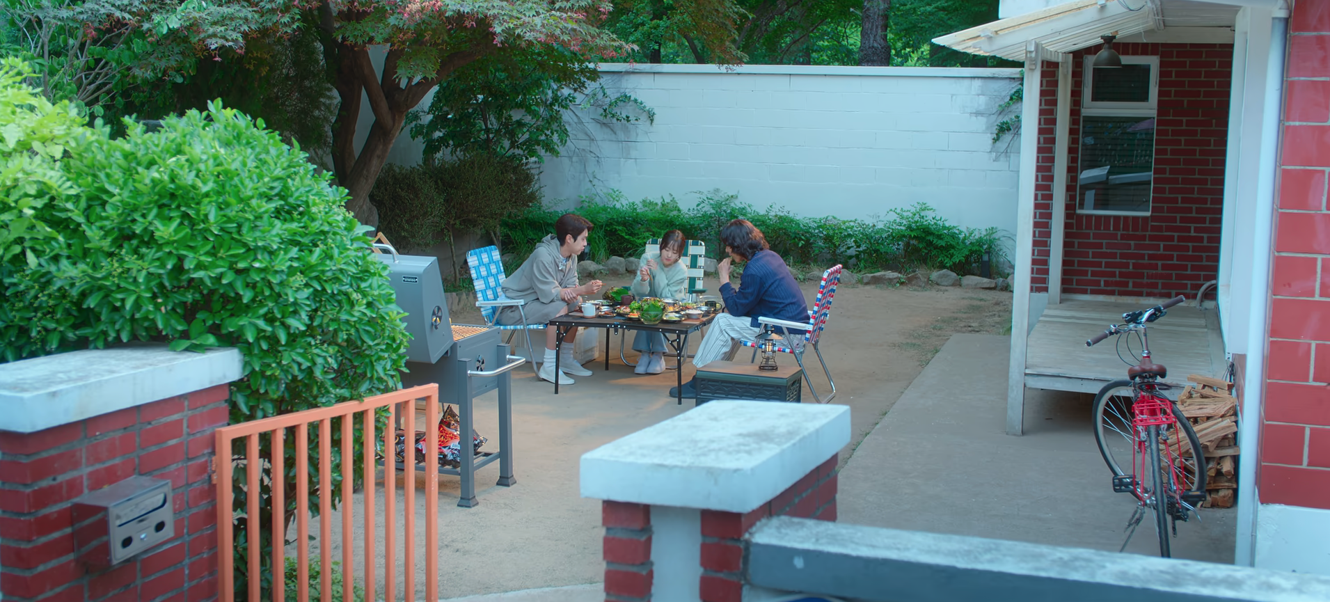 It’s first the pizza joint and then Gyeom’s house. Gyeom invites Moo-bi to join him and Joon for some barbecue in his front yard. On another day, he rushes out to hand an umbrella to Moo-bi and the umbrella comes in handy when it begins to rain later on that day. Then on another separate occasion, Moo-bi catches Gyeom sitting outside the convenience store with some snacks that he’s already bought beforehand. And since he was waiting for her, she decides to sit with him. Moo-bi also joins Gyeom and Joon on their traditional movie night. Gyeom watches the movie but also can’t stop looking at Moo-bi. Moo-bi can’t help but fall for Gyeom’s silly little antics. One night while walking home, she finds herself alone and Gyeom is nowhere to be seen. She’s a bit disappointed as she had gotten used to him being around her. But just like all the other times, Gyeom is there for her again. He pops out of the bushes pretending to bid farewell with someone and then walks home with Moo-bi (spoiler: there wasn’t actually anyone talking to Gyeom and he was just joking around LOL. I laughed so hard during this scene!). Moo-bi can’t help but be entertained by her “coincidental” encounters with Gyeom. She’s curious as to what his next plans are and where they’re going to “meet” next. Before bidding farewell with Moo-bi in front of their houses, he stops to ask her,