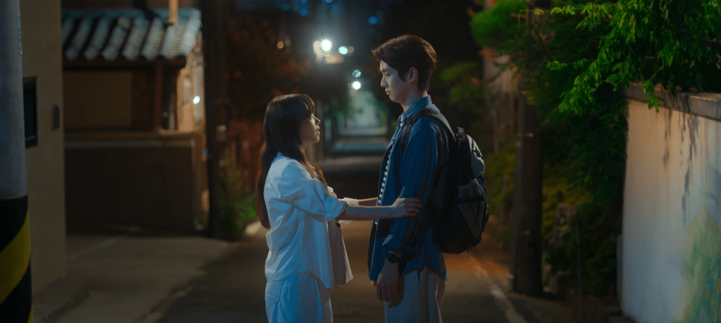 Moo-bi’s goal as a director was to create a melo movie. So why this genre? What exactly influenced her? When Moo-bi was young, she thought she would never have the time for love. She thought it was cheesy. She didn’t understand her dad’s favorite romantic movies as a young kid. Slowly but surely, she opened up to melo movies and started to enjoy them. Then once Gyeom came into her life, it all started to make sense. Though Moo-bi still doesn’t understand what love is, what she does know is that you need it in life. Especially for those who lose a loved one. This especially applies to Gyeom who just lost his brother. Moo-bi watches Gyeom as he stands outside of his house alone. He’s afraid to enter the front yard now that his brother is no longer alive. Things just aren’t the same.