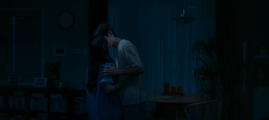 Time passes by and Gyeom carries on with his life. He expected that Joon’s death would change everything but it didn’t really. Director Ma and Joo-Ah reach out to him to offer some support. Si-joon wants to be there for his friend but he’s unsure as to how to approach Gyeom. Meanwhile, Moo-bi is there for Gyeom every step of the way. The couple goes on daily walks, eat together, and go on dates where they talk about the most trivial things all night. But there’s the rare moments in between where it seems as if Gyeom’s lost in his own thoughts and there’s this anxiety that slowly creeps in. One night while walking home together, Moo-bi notices that Gyeom is in one of those moments again so she disrupts him this time. Facing each other, Moo-bi and Gyeom stare into each other’s eyes in silence for a few seconds. Moo-bi attempts to “transmit” a message to Gyeom without saying or doing anything. Hopefully, he was able to receive her special message. The two lovers give each other a warm hug and bid farewell for the night. When Moo-bi enters her house, she quickly peeks out of the window to watch Gyeom enter his house.