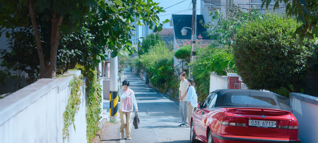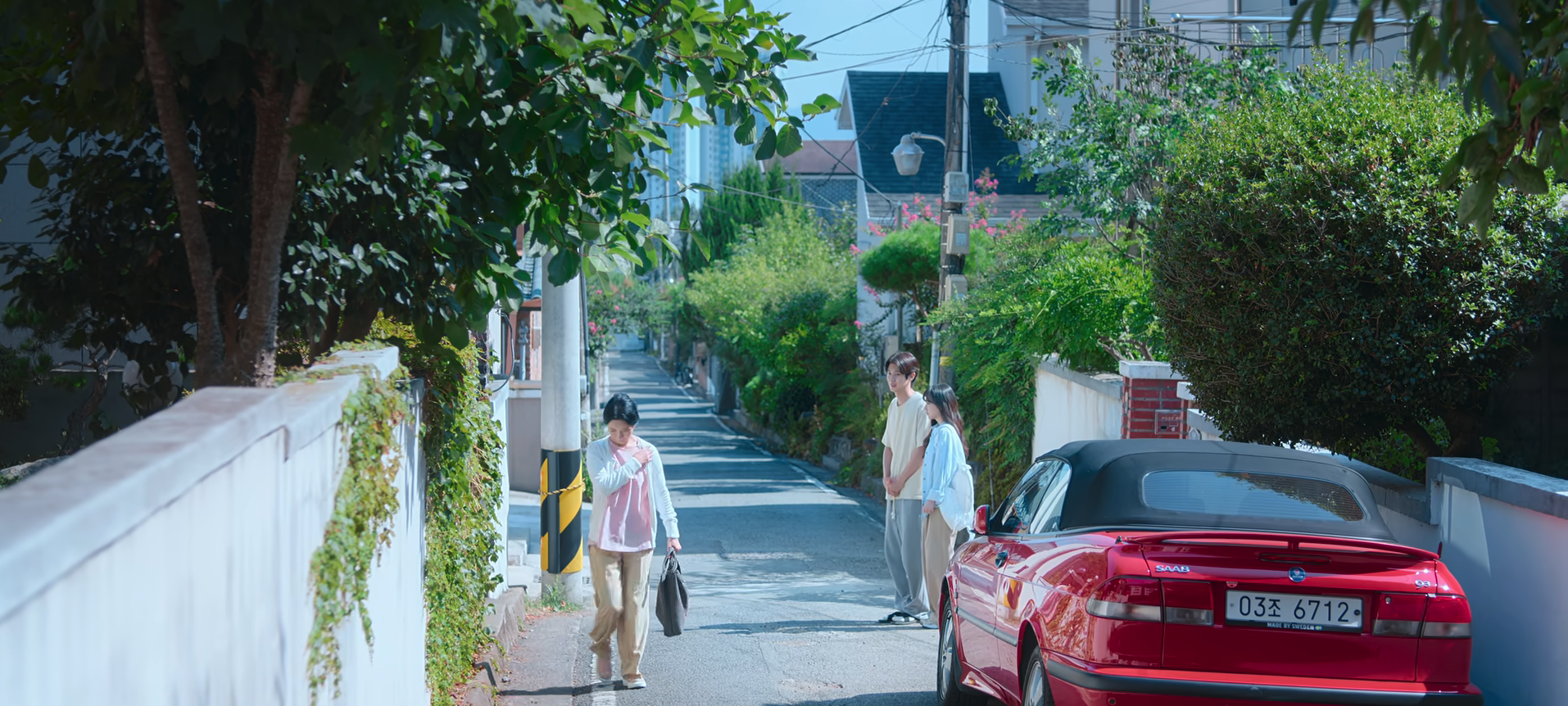 Moo-bi reviews her notes on her cancelled movie and she’s reminded of Director Ma’s advice about telling her story. It was the same exact thing that her father used to tell her when she was a kid. He wanted to create a movie to tell a story. Moo-bi rests her eyes due to fatigue and wakes up in a sweat from suffering a nightmare. She leaves the office and is about to smoke a cigarette outside when she recalls that she had quit smoking. It no longer helps her deal with her stress. But there’s another way that Moo-bi can deal with her stress and it’s much (much) better (and healthier) than cigarettes. It’s none other than Gyeom. He shows up in his red car to pick her up. Five years ago, she mentioned to him that she would tell him if she ever needed his help. And in order for Gyeom to help Moo-bi, he needs to be near her. So with that, the two give each other a hug and then walk to his car holding hands. In the last episode, it was Moo-bi who was there for Gyeom. This time, he’s the one reaching out to her and being there for her.