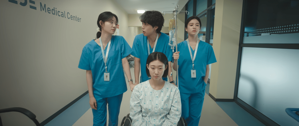 In episode 8, we saw things get personal for our other residents as well: Sa-bi ended up getting surgery so she experienced what it was like to be on the other side as a patient for once. Even though she was technically a patient, she was still hungry for work and kept on visiting her friends in the meeting room and stayed involved. This displayed Sa-bi’s desire and determination to be great at her job and to do well which is consistent with her character. It’s traits that we’ve seen from her plenty of times throughout the drama. Thankfully, her surgery ended well and nothing bad happened to her but I did wish the drama had expanded on her sub-plot a little bit more. If the drama actually used her surgery to convey the message and lesson that it’s okay to rest and it’s okay to not focus on work so much and that it’s okay to take breaks, I think I would have liked it a little bit more. The drama could have done something new and intentional with her surgery but instead, things kind of felt a bit futile in the end. I’m not really sure if any message or lesson came out of Sa-bi’s surgery? It was such a different experience for Sa-bi and our 3 other residents too so I wished the drama could have done something a little bit more with it. Instead of treating patients, they were taking care of their own friend who was now a patient. The drama could have done more with this part.